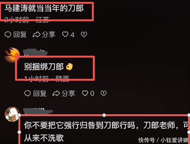 更搞笑的是,马健涛的粉丝还把他当成“第二个刀郎”,气得刀郎粉丝连忙出来切割,生怕被牵连。不过仔细想想,这件事里,根本没有输家!