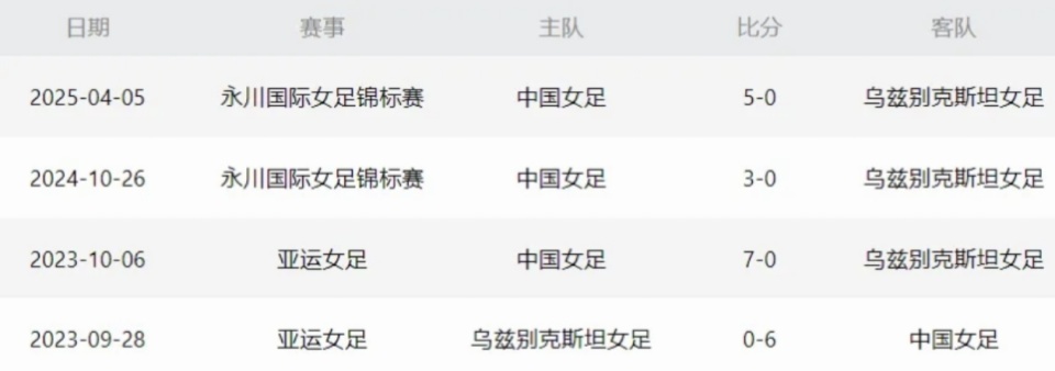从历史战绩来看,中国女足对乌兹别克斯坦,那真是“手拿把掐”。自2023年以来,两队一共碰过4次面,中国队不仅全赢了,而且赢得特别干净利落——4场比赛,中国女足狂轰21球且0失球,这是相当恐怖的数据!
